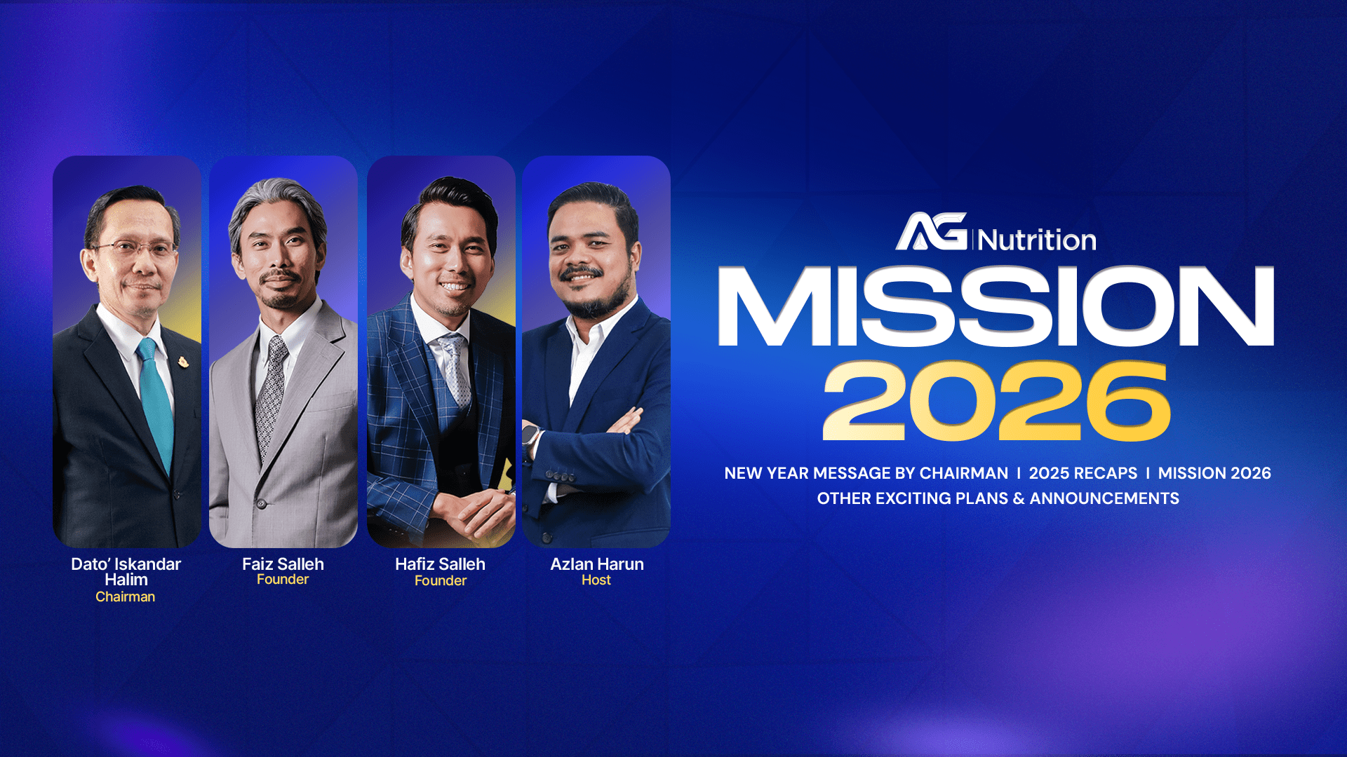 MISSION 2025, held on January 8, 2025, via Zoom, celebrated AG Nutrition’s 2024 achievements—$15M USD in sales, AG Leanz and AG Academy launches, and 20 impactful events—and outlined bold plans for 2025, including new products (chocolate drink, energy shot), expansion to Indonesia with AGiBOOST and a new HQ, mobile apps in Southeast Asia and Africa, major events like the Transforming Gala and mega training in Kenya, and an ambitious $20M USD sales target, all aimed at inspiring growth and innovation.